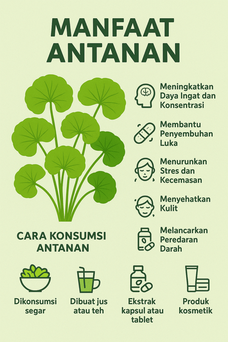 Antanan atau pegagan (Centella asiatica) adalah tanaman herbal yang tumbuh liar di pekarangan, sawah, hingga pinggir jalan. Meski sering dianggap gulma, tanaman berdaun hijau bundar ini memiliki segudang manfaat, baik untuk kesehatan tubuh maupun perawatan kulit. Sejak lama, antanan digunakan dalam pengobatan tradisional Asia dan kini menjadi bahan penting dalam industri farmasi dan kosmetik modern.