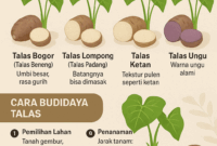 Talas (Colocasia esculenta) adalah tanaman umbi-umbian yang banyak dibudidayakan di Indonesia karena nilai gizi dan ekonominya. Umbi talas kaya karbohidrat kompleks, serat, serta vitamin…